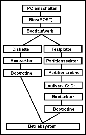 dann gestartet wird. Der Bootsektor beinhaltet genauso Befehle wie das Bios-Rom. Diese Befehle sind